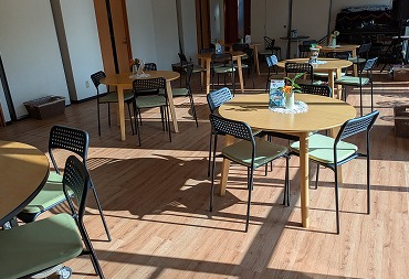 庭のテーブル席ではわんちゃんも楽しそうに駆け回っていました。