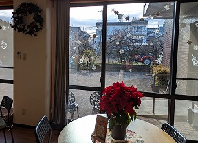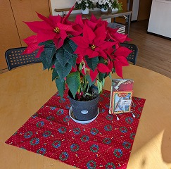 ポインセチアもクリスマスの装いでお客様をお出迎え