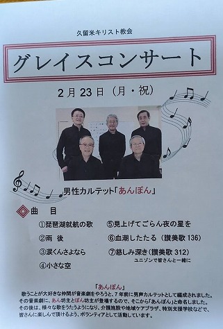 2月のグレイスコンサートのお知らせです。